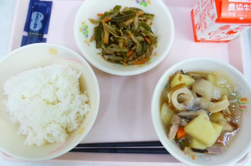 今日は、河井小学校6年生リクエスト第1位の「チーズ納豆」です。ひきわり納豆とチーズが相性がいいこともこの献立でわかりました。栄養バランスも優れたおかずなのでしっかり食べましょう。6年生に食べてもらえて良かったです。白ご飯にあうと思っていますが、ご飯が残るクラスもあり残念です。肉じゃがは地域によって、牛肉・豚肉とわかれますが給食は両方使用しています。