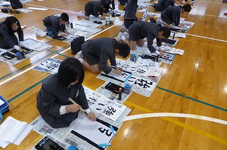 本日2、3時間目を利用して、書き初め大会が行われました。