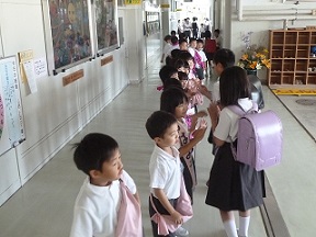 高学年のお兄さん、お姉さんは、やさしくハイタッチしてくれました。