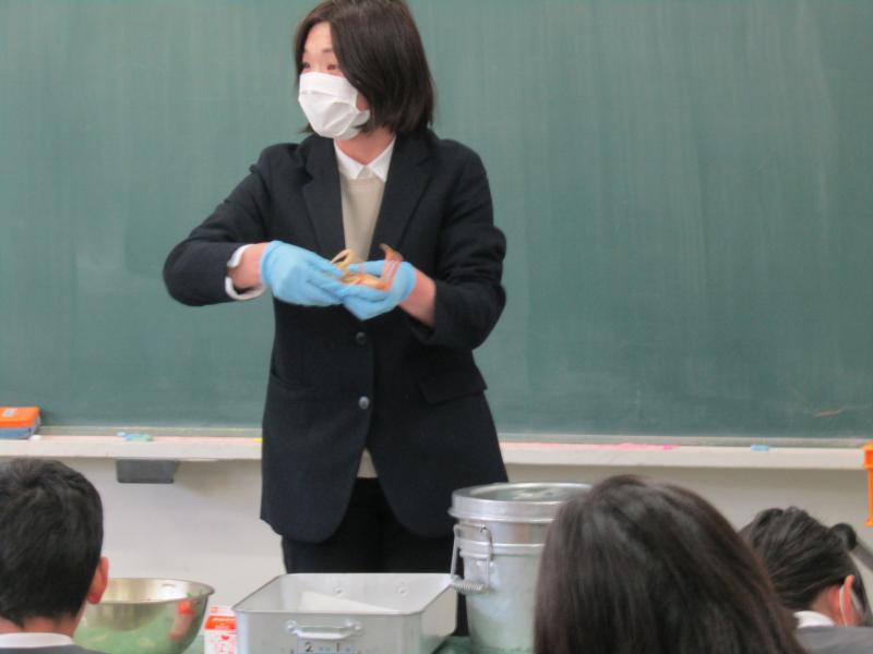 天満先生からカニの食べ方について話をききます。