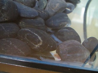お腹に大きな卵黄のうをかかえた稚魚がいるはずなのですが、みんな上手に石と石の隙間に隠れてしまい、姿が見当たりません。