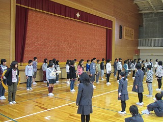 本日の6限目,金管鼓隊の引き継ぎ式が行われました。