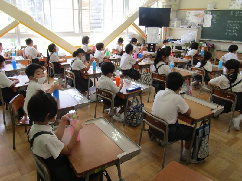 友だちと混ぜて新しい色を作ったり、ペットボトルを並べたりして表現します。