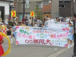 スローガン通り,沿道でパレードを見ている方々の顔にはステキな笑顔の花がさいていました!