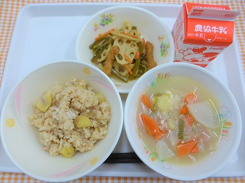 今日は年に一度の栗ごはんでした