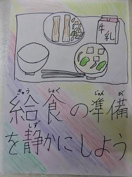 このポスターを見て、ひとりひとりが給食の準備を静かにしよう!と意識してほしいと思います