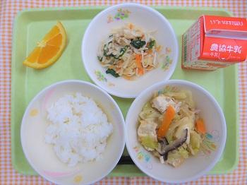 給食の時間に2年生の教室に行くと、配膳された食器の位置が違う児童が、自分で正しい位置になおしていました