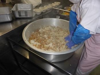 ちらしずしは、味付けした具材を混ぜ込むので、調理室は大忙しでした