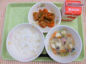 給食の時間前に「今日の給食何ですか?」と聞かれ「酢豚だよ~!」と答えると、大きなガッツポーズをして喜んでいました