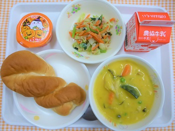 今日はハロウィンということで、かぼちゃを使用したメニューでした