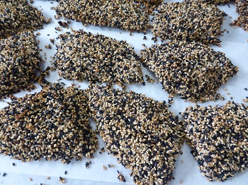 調理室ではサバに白ゴマと黒ゴマを手作業で付けて焼きました!