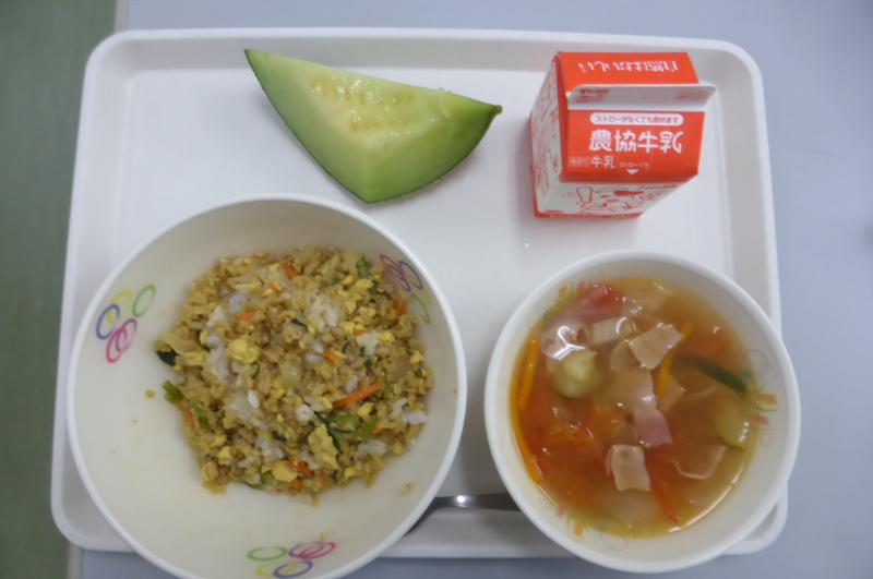 2学期の始まりと同時に給食も始まりました。1学期にメロン献立の日に提供できませんでした。