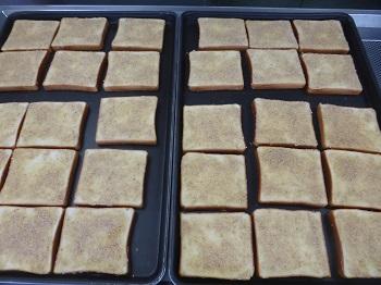 420枚の食パンに塗るので、とても忙しく、時間のかかる作業です