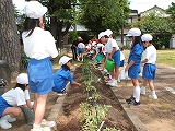2年生がさつまいもの苗植えをしました。