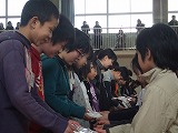 1年生から6年生に、感謝の思いをこめたプレゼントを渡しました。1年生は、