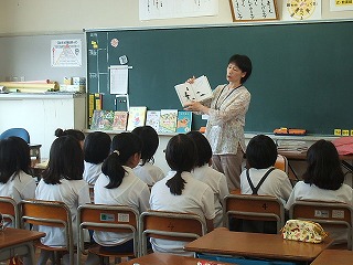 図書ボランティアによる、夏休みに向けての本の紹介をしていただく