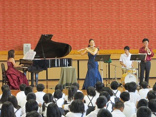 藤井幹人さん他2名の演奏家をお招きし、学校でクラシックコンサートが開かれ