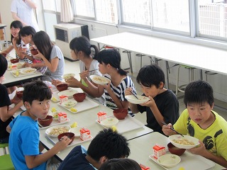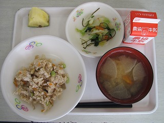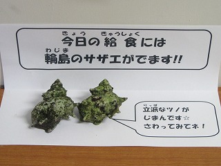 給食にサザエごはん!!