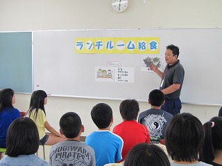 6年生はランチルームで漁協の方から、サザエについて説明を聞きました。