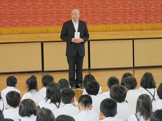 終業式では、計画的に勉強すること、けがや事故のないように