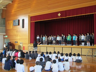 今日は1年生による学年発表「くじらぐも」の群読がありました。