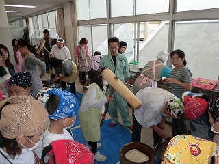 4年生みんなが田植えをし、収穫したもち米を使って、