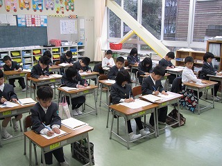 たくさんの児童が集まっているにもかかわらず,どの児童も集中して書いていて,とても静かでした。
