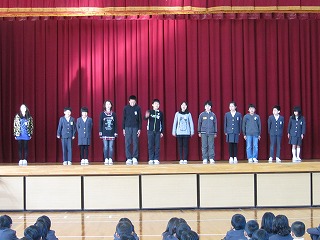 この日は、代表委員会からのお知らせと、2年生の学年発表がありました。