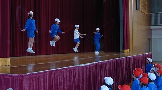 集会では、まずはなわとび上級者によるデモンストレーション。