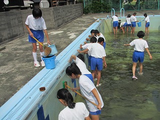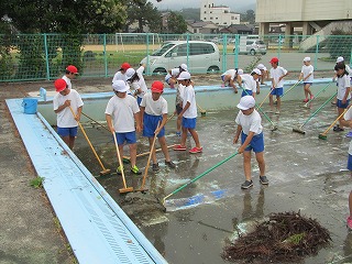 5・6年生が夏に向けて、プールを掃除してくれました。