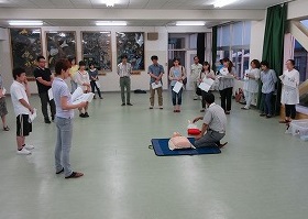 PTAによる心肺蘇生法講座が本校ランチルームにて行われました。