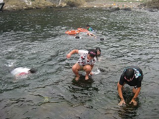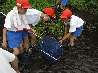 3年生が河原田川に水生生物の観察にいきました。