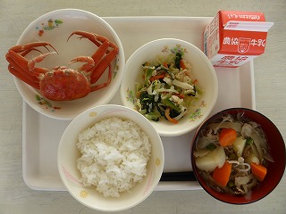 本日、毎年恒例の『カニ給食』が行われました。