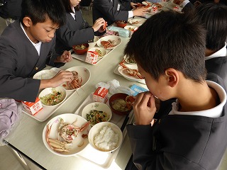 ごはんの小豆に苦戦する児童もいましたが、みんなよく味わって食べていました。