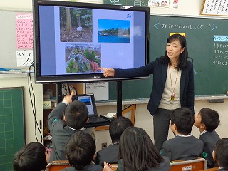 JICAの木水さんにお越しいただき、1年空組の子どもたちがサモアについての授業をうけました。