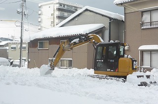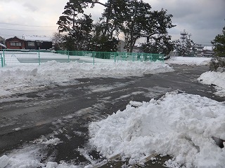 保護者の方の協力を得てユンボにも出動してもらい,とてもきれいに雪をよけられました。