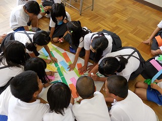 縦割り仲良し班で、七夕飾りづくりをしました。