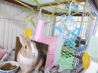 ポンタもおうちにプチ七夕飾りをもらいました。