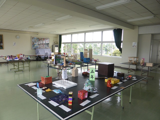 集会室『風』にて、夏休み中にこども達がつくった作品を展示する『夏休み作品展』を開催しています。