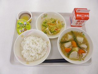 明日9月15日はお月見ということで、今日は給食に1日早いお月見給食が登場しました。