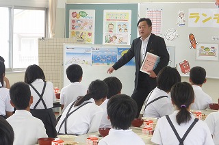ランチルームでは、5年生が輪島の水産業についてのお話を聞きました。