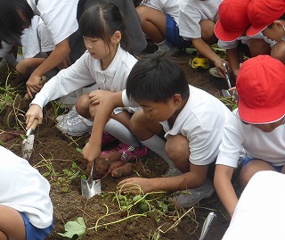 2年生が5月に植えたさつまいもの収穫を行いました。