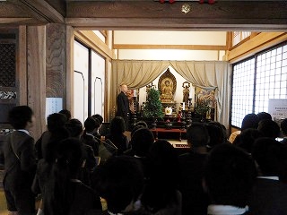 輪島ロータリークラブのご協力を得て、3年生が総持寺で座禅体験をしました。