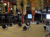 境内を案内していただいた後、大祖堂で約20分間座禅を組みました。