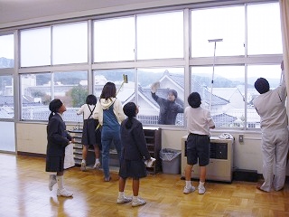 親子ガラス拭き