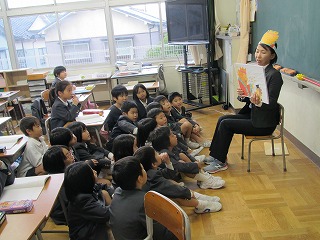 1・2年生が、パペットリィメッセンジャーズの岩山さんによるお話し会に参加しました。