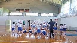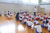 3限目に仲良し会をしました。1年から6年生の縦割り班で、上体起こし、長座体前屈、立ち幅跳び、50m走、ソフトボール投げに挑戦しました。