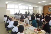 親子で給食を食べました。輪島塗椀で地場産物のブリや野菜の給食です。