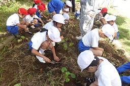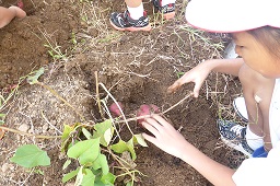 2年生は、春に植えたさつまいもを掘りました。おおきな芋がたくさん採れました。
