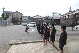 今週は、お隣の輪島高校の生徒と河井小学校の5,6年生が一緒にあいさつ運動を行います。